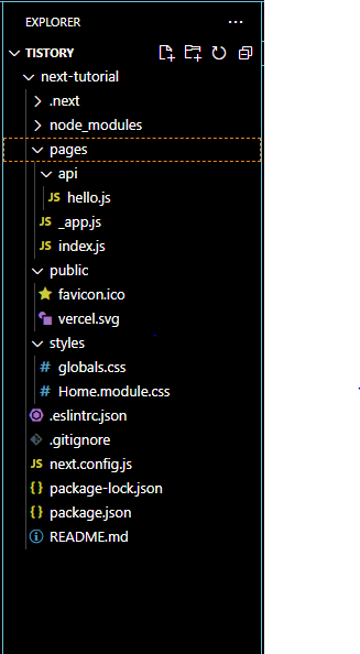 설치가 완료되면 프로젝트명과 동일한 디렉토리가 생성된다. Next.js의 관련 파일들이 모두 들어있으므로