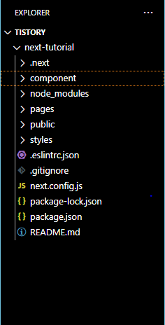 최상단 폴더 하위에 component란 파일을 만들어 주자. 필자는 next-tutorial 하위에 만들었다.